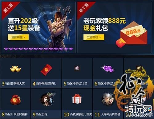 ■老玩家专享!经官网认证的老玩家进入“爽战天下”新区,将获得内含千元工资包、无暇宝石、征途传等实惠好礼的“神兵资料片大礼包”,价值888元,无需任何付出哦!