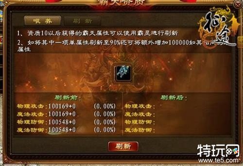 新功能中还包括霸天坐骑的进阶,该功能将为玩家提升更高战力,幸运模式喂养的推出,更是为玩家节约了大量消耗。喂养霸天需要消耗“霸源”,在《征途》大盟区活动开启期间,玩家完成相应的大盟区任务就必定能获得“大盟区兑换卷”,使用该券,就能在背包内直接换取“霸源”喂养霸天。喂养到一定程度后,霸天的资质将提升,为玩家增益的攻防血量等属性数据将更高,当玩家的霸天资质达到11以后,还可以通过“刷新”功能来获取更多的属性加成。毫无悬念,新霸天将成为《征途》最霸气的坐骑,没有之一!