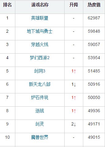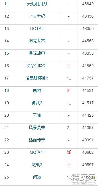 热门网游榜:剑网3进前五 QQ飞车重回榜单