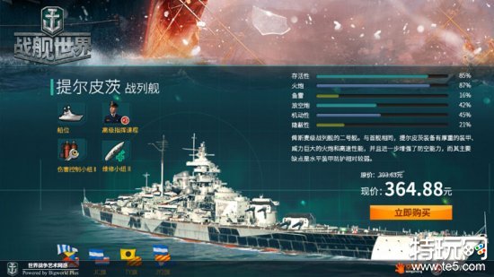 战争三部曲高级账号联通,将在此次不删档测试正式开放,玩家在三部曲任意游戏充值高级账号将可有在三款游戏中通用。俾斯麦二号舰提尔皮茨首次亮相不删档,作为加值战舰提尔皮茨无论在历史,还是游戏船舰性能都有着大批粉丝,相信提尔皮茨的出击必将为《战舰世界》注入新的活力!