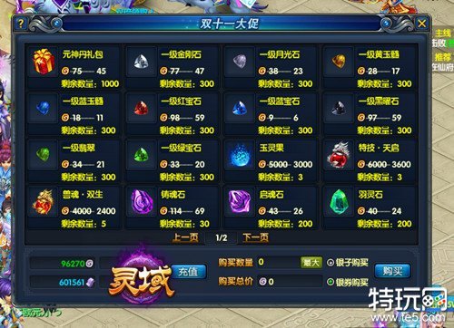 双十一买买买,让你一次爽个“购”!现实世界中畅买不停,玄幻世界里也要爽个够!为了回馈广大玩家对灵域的支持和厚爱,值此全民狂欢之际《灵域》特推出双十一大促活动,全场疯抢,超值超乎想象,走过路过绝对不能错过哟!所有大促道具6折限时限量出售,宝石、天启、双生、铸魂石、神兽精魂等珍贵道具都以触底狂欢价回馈给各位大侠,战力暴涨、神装加身、神兽相伴变得如此轻松简单,秒升大神就在此次!购物车塞得满满当当只差买买买了,你把包裹腾空好位置了吗?