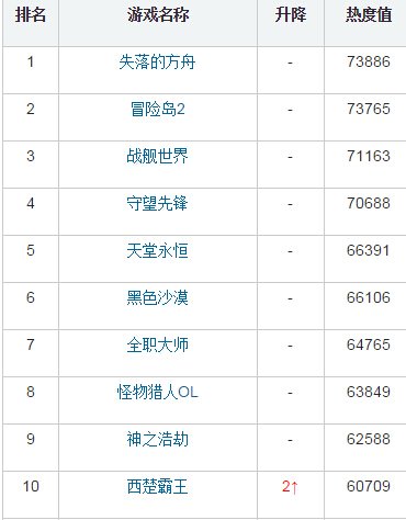 注 :新游期待榜收录了玩家最期待的新游,并以热度值的形式排行呈现。热度值综合了投票、流量、指数、用户行为等 ,可以更加综合性的对新游进行排名。排行榜每日刷新1次,同时榜单的票数每半年将清空一次,重新开始计数(本榜单数据于2015年6月30日清零,重新计数)。 所有已经开放测试的游戏不再属于新游,不再参与新游期待榜的评选。