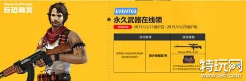 为庆祝CSOL世界杯2015成功举办,玩家每晚20:00准点在线,即可获得高级强化材料3个!