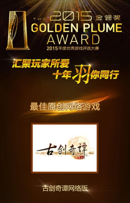 “金翎奖”2015年度优秀游戏评选盛典已落下帷幕,在大家的支持与票选下,由网元圣唐旗下烛龙研发、网元圣唐与欢聚游戏联合运营的《古剑奇谭网络版》荣获2015年金翎奖“最佳原创网络游戏”奖项!
