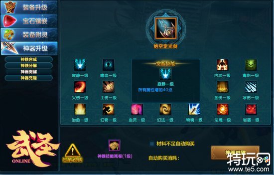 神兵不需要鉴定,属性都是极品!那么是不是就不再有提升呢,no!除了升级升阶、精炼镶嵌之外,神兵还可以通过觉醒来激发独有技能!