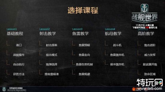 本期教学分为五大课程讲解,通过各大系统进行细节演示,从基础教程、射击、鱼雷航母教学分批指引玩家具体操作,彻底让玩家度过小白阶段。进阶篇演示舰船核心区域以及各类舰炮弱点,让你实战中更直接打击敌方舰船,成为一名海战老水手。高瀚宇全过程语音讲解,完成全部课程即可获得毕业奖励,丰富战场涂装让众人一眼就知道你是老兵。