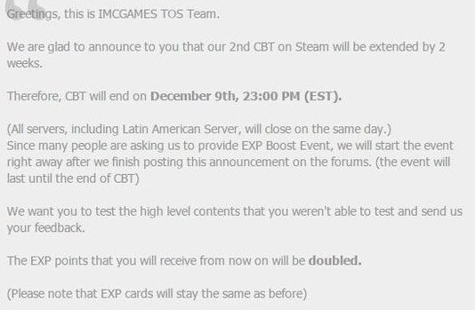 《救世之树》英文版于10月27日开启测试,原定计划于11月25日结束,为期一个月。近日《救世之树》开发商imcGames宣布测试将延期两周,服务器一直开放到12月9日才会关闭。