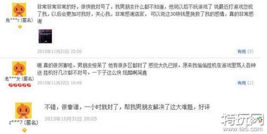 记者查阅发现,该店近15天的销售量已达7263笔。在评论中不少网友称,购买此服务是用来帮助男友戒网瘾的,更有买家坦言,自己骗来男友的账号和密码,把他的游戏账号封了以挽救爱情。同时也有网友评论:“毁掉了对手一个价值上万的账号,再比赛肯定赢不了我们”。记者以买家身份询问店家如何封号,对方称,需要提供绑定的账号和密码才可操作,付款后1小时开始生效。“具体怎么操作我不能说,你付款后如果发现账号没有被封,可以退款。像dota之类的游戏也只需提供绑定的邮箱和密码就可以”。店主最后还特意提醒,封号后,顾客可以更改密码以确保个人信息安全。