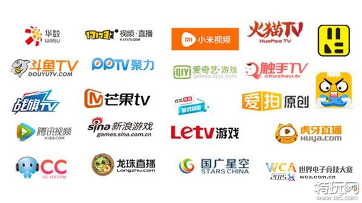 WCA2015全球总决赛的直播阵营包括斗鱼TV、战旗TV、虎牙、触手TV、火猫TV、腾讯视频、搜狐视频、新浪看游戏、乐视网、芒果TV、小米电视、爱奇艺、PPTV、爱拍、17173直播、国产星空手机电视、玩舍科技、网易CC、华数传媒、龙珠、环球互娱等合作伙伴,不仅涵盖最顶级的游戏互娱直播平台,如斗鱼TV、战旗TV、虎牙直播,以及全线门户类及视频门户类等传统豪门。而锁定家庭影音渠道的小米电视、华数传媒等亦赫然在列。全渠道的直播阵营,将呈现一场跨越TV、PC及手机三大屏的赛事直播盛宴,广大的电竞玩家和粉丝们,可以随时随地随处地享受超燃的竞技乐趣。