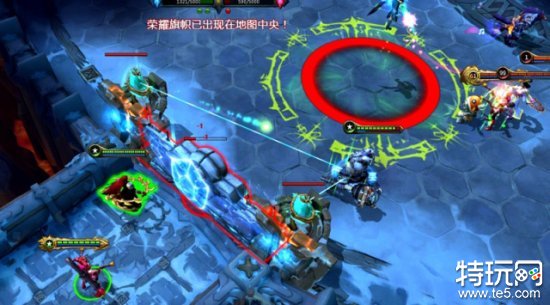 在祭坛争夺战中还穿插了夺旗的部分,开战3分钟,地图中央将出现一面荣耀战旗,将战旗带回己方占领的祭坛也能获得大量资源分,而占领祭坛的数量越多,得分也越高。需要注意的是,携带战旗的玩家将变身旗手,获得3个有利于跑路的自保技能,此时你的目标就是尽快把战旗带回祭坛。
