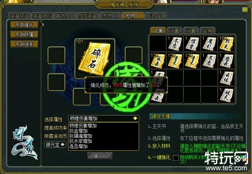 除了增加属性,“天书散卷”更有强化、继承和转化三大绝招。强化可强化天书属性,继承可提升天书等级,转化则可以改变天书的基础属性。如此,四大绝招配合天衣无缝,必能助道友炼就至尊神宠,所向披靡!