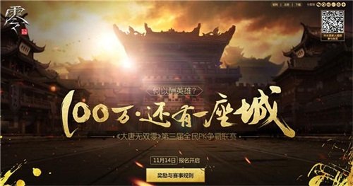 每一届“百万皇城PK争霸赛”都是第一战斗网游《大唐无双零》年度风向标,今年自然也不例外,就在争霸赛进行的如火如荼之际,《大唐无双零》2015年度大资料片也预定将在12月上线。百万皇城PK赛的最大奖励“一座城”与资料片最大玩法相呼应,全新推出的次世代城战玩法将会吸引众多玩家的关注。