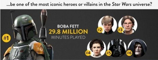 今日,EA发布了《星球大战:前线》发售三周的数据图表。其中最具人气英雄既不是宣传片中频频露脸的黑武士,也不是主角卢克,而是波巴·费特。他被操作的总时间居然达到了2980万分钟!下面就一起来看看还有哪些有趣的数据吧。