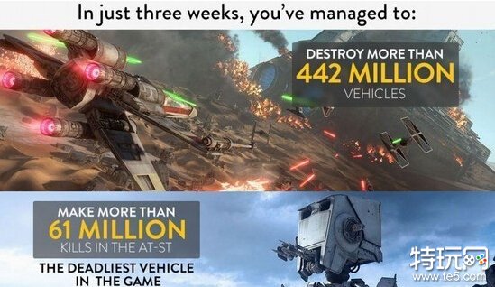 游戏中超过4.42亿个载具被摧毁,游戏中最致命的载具是AT-ST,总杀戮是6100万