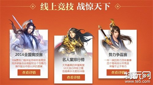 线上竞技战惊天下,2016年全国竞技赛0消费使用顶配,进行终极PK!势力争霸赛全面革新,神启与压等级划分,四个阶段等级均可参赛,最终名列前茅的势力不仅能获得属于势力的荣耀,还能为所在服务器所有玩家赢得奖励,获得赞誉!名人堂2016年度评选正式开启,6大排行终极卫冕。
