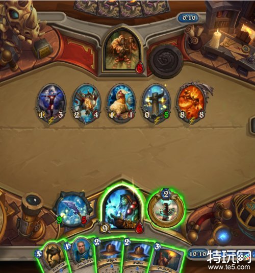 攻略这个boss的要点是有足够的解牌来对付10/10,然后慢慢磨死boss或者苟活到一回合把boss强行otk掉。选择OTK套牌的风险 在于牌序,拖太久后面的小Boss解不掉会很麻烦,建议还是稳扎稳打,双埋葬双灭的牧师在这里非常好用。个人虽然很不喜欢龙牧但是必须要承认龙系框架在对 抗这个Boss时的优越性。起手刷到下图的一痛一灭一幼龙的话前几回合会很舒服很舒服。灭和埋葬尽量留给10/10,有费用的时候一定记得优先用英雄技能刷文物。
