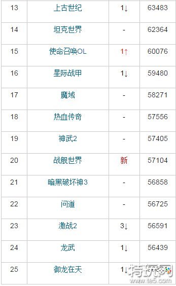 本周热门网游榜,空中网的热门军事大作《战舰世界》热度有较大提升,进入热游榜前25,而同为空中网代理的《激战2》热度排名则下滑了3位。此外,剑灵、DOTA2、CODOL等游戏的热度都略有上升,以下是本期热门网游榜TOP25具体排名。