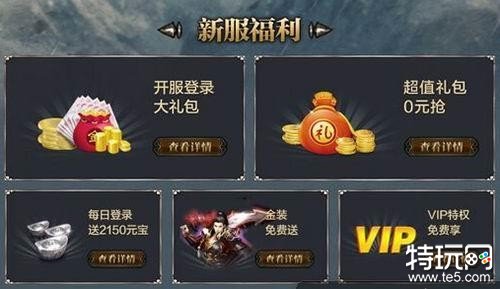 此外今天登陆游戏还有登录大礼相送哦!元宝、金装、VIP特权、登录大礼包助力大家在新服腾飞,勇夺巅峰排行第一名!