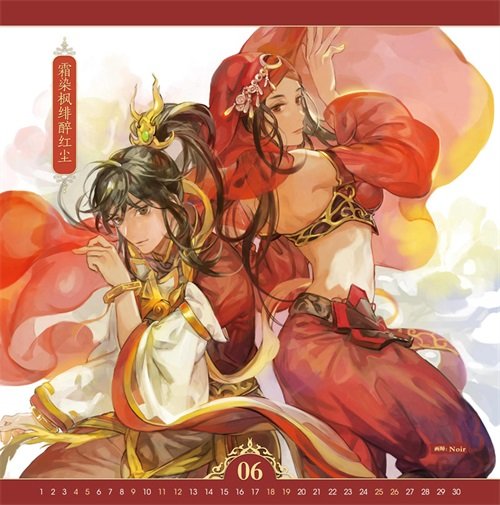 6月,画师Noir用绯红的画色,展现了男方士莫忘尘与女侠客沈傲霜的青梅之恋,这是一段炽烈并且真挚的爱恋!