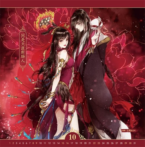 10月,依然是長陽RIN的画作,神秘却又艳丽的红色,凸显了男魅者冷月心和女魅者风摇筝的特点。魅人心绪本是魅者所长,奈何二人同是为情所困,心凉人断肠。