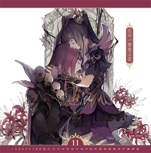 11月,是同人画师nineo的倾力之作,安详精美的姿态,是男女异人叶葬花和花渐隐期望中的最好归宿。