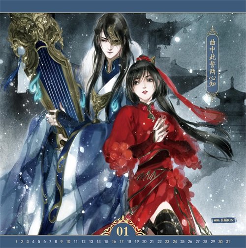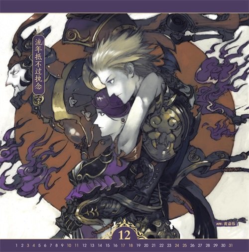 12月,插画仍出自漫画家黄嘉伟之手,体现了男女偃师檀无心和阮烟罗这对师兄妹对前度情恋的执着不悔。