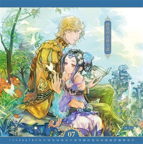 7月,插画师Noir使用的多彩明亮的画色,是男女画魂乔寻影和水凝墨这对丹青客的颜色,二人皆醉心画意,至情至性!