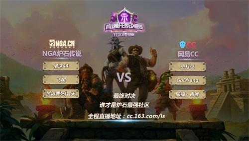由网易CC独家策划主办,炉石传说百度官方贴吧、NGA以及旅法师营地国内三大炉石人气社区共同参与并协办的首届肯瑞托社区对抗赛决赛周六晚火热开战!经历半个月的层层对决,NGA战队以及主办方CC战队最终脱颖而出,最终哪一个社区将问鼎最强炉石社区,摘取首届网易CC肯瑞托社区对抗赛冠军荣耀,让我们周六晚19:30共同关注巅峰对决!