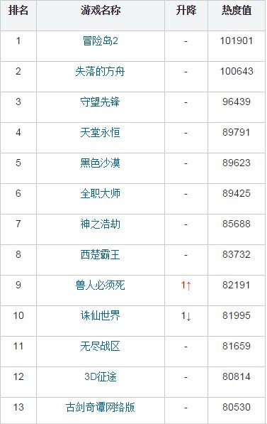 本周新游期待榜上,多款游戏的热度排名顺序发生了些许改变,其中即将在1月开测的《九阳神功》和《狂野星球》热度排名都提升了2位。由于本期是2015年最后一期榜单,因此也可以看到今年期待榜前三甲最终分别被《冒险岛2》、《失落的方舟》以及《守望先锋》所拿下 。