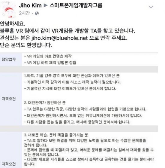 29日,《TERA》的开发商,韩国Bluehole公司宣布成立VR组,将进行VR游戏的开发。