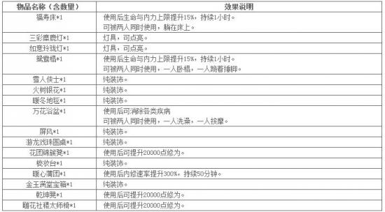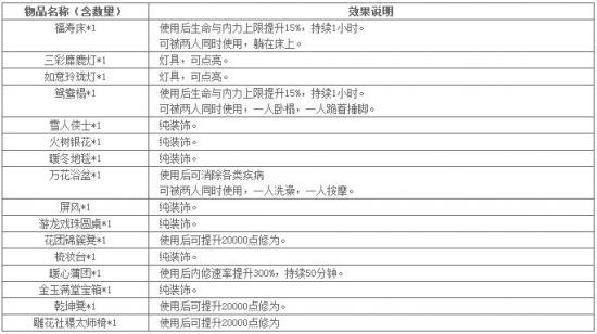 皇室家具箱:拾取绑定,有效期至2015年1月31日0时,打开获得双旦家具(不绑定)随机一件,可获得如下: