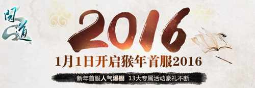 《问道》8万人年度首服“2016”即将震撼开幕,携百万好礼倾囊相送,更有新版本“奇经八脉”2599新人大礼包全力助阵,红包贺喜、签到巨奖、召回大礼等等全福利活动不容错过,新玩法、新活动、新战场、全福利,就在1月1日新服“2016”,“孙茜”陪你一起跨年!