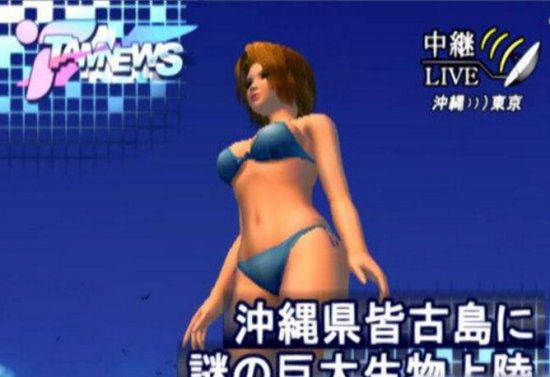 游戏中还有电视台实况转播的画面,可以从多角度视奸观察理保妹子《The 大美人》由日本游戏公司 D3 Publisher 推出,讲述写真偶像双叶理保在沙滩摄影时被不明外星生物蛰到,竟然巨大化成凹凸曼的身材,于是玩家们就要操作日本自卫队去应对这个“谜之巨大生物”了。