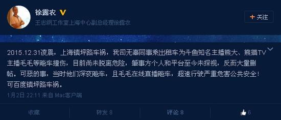 12月31日发生的斗鱼主播熊大等直播飙车造成严重车祸事件被包括央视等各大主流媒体报道。