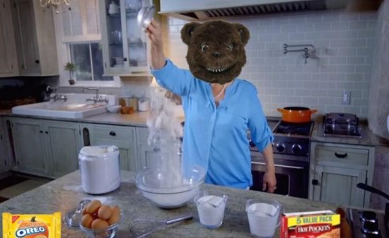 一张模仿电影海报风格的创作,因成功PS进了《猎天使魔女》的女主角贝优妮塔(Bayonetta)、《宝拉·迪恩的食谱任务》的代言人宝拉·迪恩获得了此次恶搞的冠军。