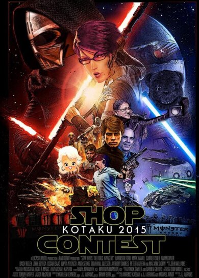 最终,一张模仿电影海报风格的创作,因成功PS进了《猎天使魔女》的女主角贝优妮塔(Bayonetta)、《宝拉·迪恩的食谱任务》的代言人宝拉·迪恩(Paula Deen)、《时代》杂志封面虚拟现实设备Oculus Rift创始人帕尔默·拉吉(Palmer Luckey)、《聪明的沃里》的主人公沃里(Wally)以及卢克·天行者(Luke Skywalker)而荣获冠军。