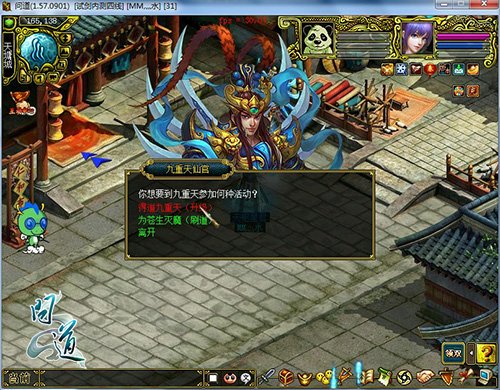 《问道》全新资料片“奇经八脉”火爆上线。在新资料片中,每周六18点到22点,跨服升级活动正式开启。所有服务器大于60级的道友通过天门进入九重天天宫,进入天宫后可在神君使者处进行组队,并领取九重天任务。之后玩家队伍根据提示,挑战四方神君。每挑战一轮四方神君,任务轮次增加一,最高增加到十,每个玩家每天最多可以挑战300次四方神君。