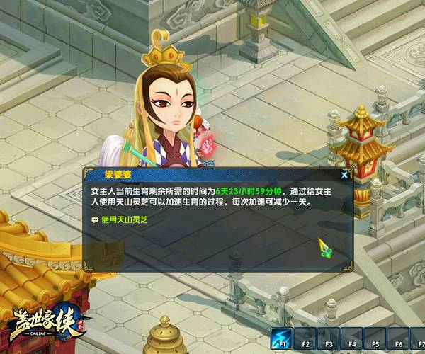 大侠如果已有结发妻子,便可以到汴京寻找梁婆婆求取生子的方法。你需要提供人参果给梁婆婆,她便会用人参果来增加妻子的滋补度,当夫妻双方累计上交9个人参果,妻子的滋补度达到100%,便可以生育孩子。告别十月怀胎,只需孕育7天时间,7天过后,你的孩子便会呱呱落地。当然如果大侠迫不及待的想要看到自己的孩子,也可以给予梁婆婆天山灵芝以缩短孕育时间。