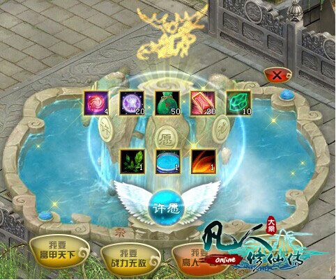 在修仙界有一个美丽的传说,有这么一潭神奇的池水,称为“许愿池”。只要背对喷泉从肩以上抛一枚许愿币到水池里,就有机会与守护神灵相见,当仙侣一起向池中投入许愿币,爱情就会永恒。如今”许愿池“已经开放,还不向守护神许下愿望,看看都能获什么样的惊喜吧!