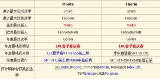 MonteCristo和Thoorin评选的 End of Year Awards 2015。MonteCristo和Thoorin是LCK的官方英文解说,他们经常会在一起讨论全球赛事,以下是他们眼中的年度选手与战队排行。