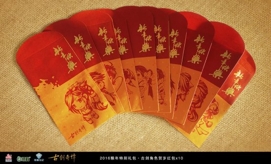 2016年的春节愈发临近,在带有古剑趣味吉庆元素的红包中放入满满心意,把爱意协同新年的喜悦传递到更多人手中吧!