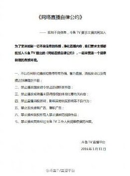 今天下午斗鱼TV才刚刚发布关于《网络直播自律公约》,如果直播“啪啪啪”视频为真,斗鱼TV恐怕还需采取进一步整顿措施了。不然,小编担心斗鱼TV这是要步快播后尘的节奏啊!