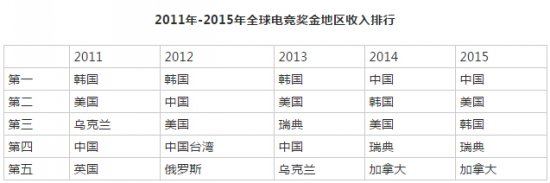 2015年全球电竞数据分析:中国选手吸金超韩国
