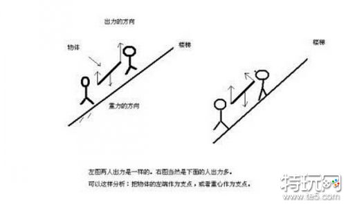大家一定以为是在上方的人较辛苦,前面出尽力提着东西,后面的只是支撑着,当然轻松得多。但根据万有引力,行李的重量不是全压在后者吗?究竟答案是什么呢?以力学而言,行李在两个人正中间的话,即使是在像楼梯这种倾斜的地方仍然是刚好平均分摊,并不会有哪一方比较轻松和比较累的,重与轻只是心理作用而已!