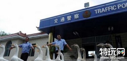 美国警察带犬执法,我们的警察带鹅,因为它们更具攻击性也更聪明。