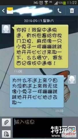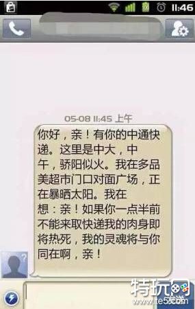 这类快递哥不屑于发送“你有快递”这样直白没内涵的消息,他们的消息(无论是否抄的)大多注重可看性、趣味性,为客户带来欢乐