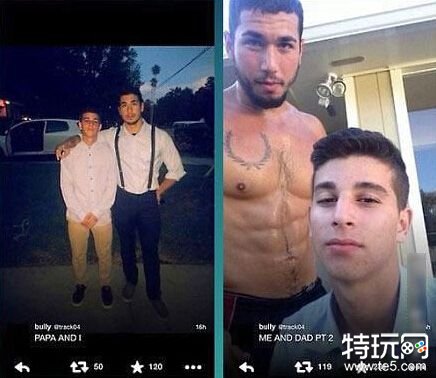 推上一个小伙子因为发了他和一个大胡子帅哥的合影而被同志圈疯转,他无奈地发照片澄清说,"我不是gay,他也不是gay……他是我爹,他是我亲爹啊!!"