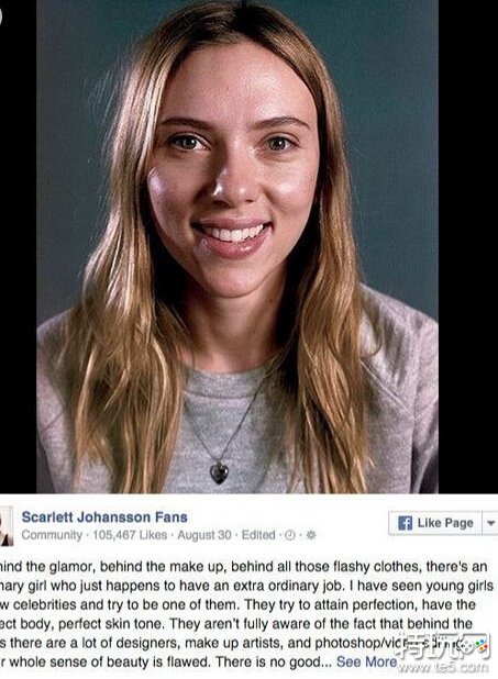 最近,女神斯嘉丽在脸书上分享了自己的素颜
