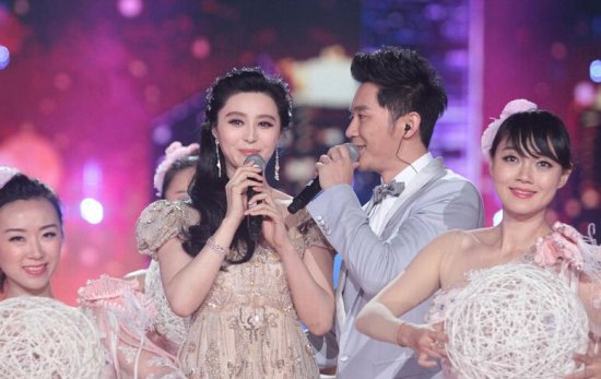 范冰冰李晨同框,演唱曲目选了熊天平和许茹芸的《爱情电影》反正他们唱得也不咋好听,你主要看他们在台上眉来眼去就行了。