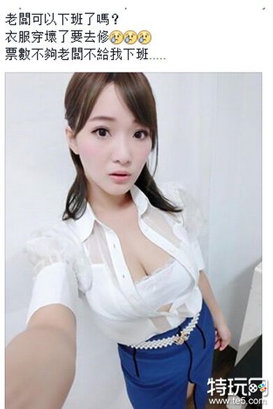 来自台湾的showgirl施菲亚最近分享了一张衣服扣子爆掉的性感照片,并配文“老板可以下班了么,衣服穿坏了要去修”,求不修永远这样。